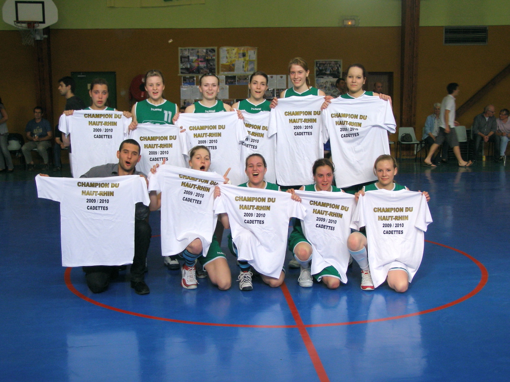 Les cadettes d'Illfurth 2 championnes du Haut-Rhin 2009/2010 avec les tee-shirts offerts par le comité départemental de basket.