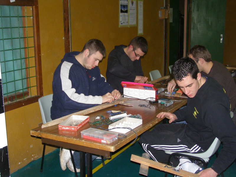 photo de la préparation des piquets pour la marche de nuit du 23 janvier par les seniors garçons.