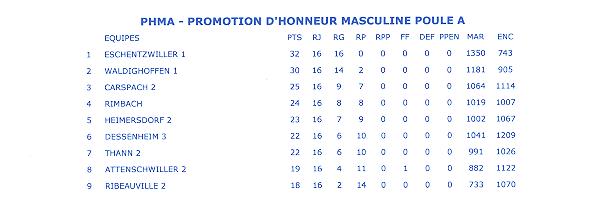 Classement final seniors garçons 1 saison 2010/2011.