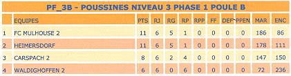 Le classement des poussines 2 après la première phase du championnat.