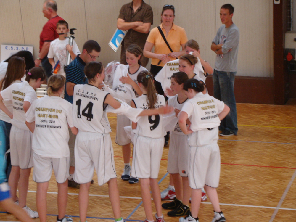 Les minimes filles du basket-club CSSPP Waldighoffen recoivent un tee-shirt récompensant les vainqueurs.