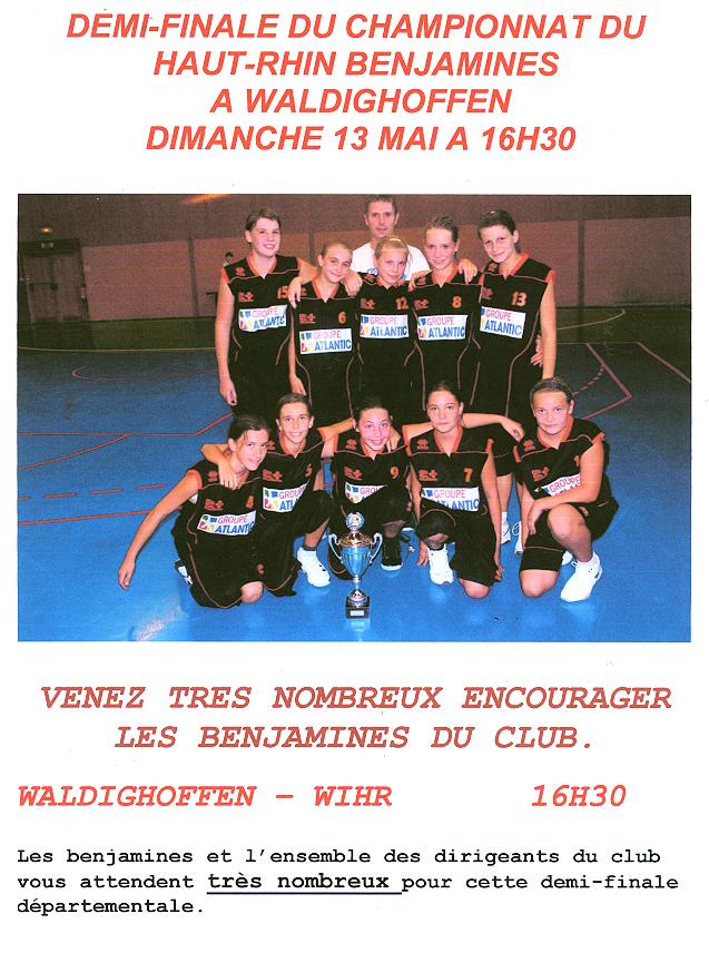 Affiche 1/2 finale benjamines du dimanche 13 mai.