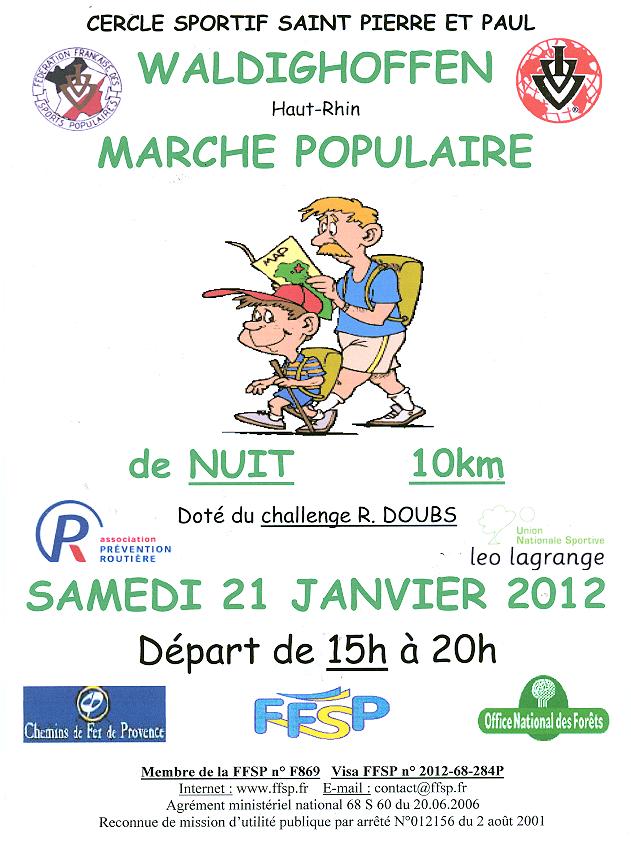 Affiche de la marche populaire de nuit du basket-club CSSPP Waldighoffen.