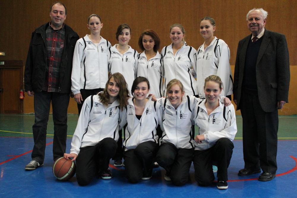 Les minimes féminines région ont reçu des survetements à l'occasion de leur rencontre face au FCM basket.