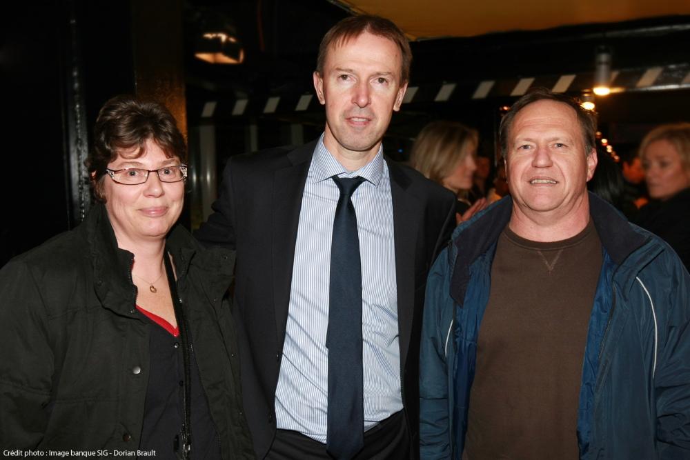 Yvette et patrick Gussy du basket-club CSSPP Waldighoffen en compagnie de Vincent Collet l'entraineur de l'équipe de France.