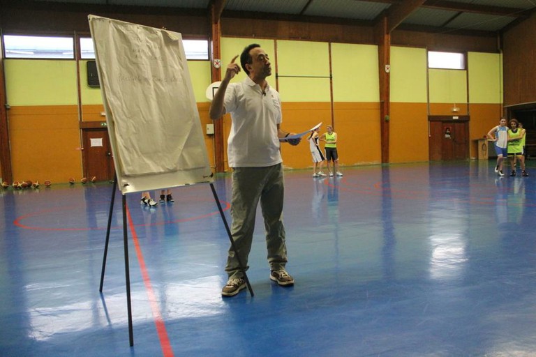 - Débriefing d'Abdel Loucif après un exercice technique de basket le 26 mars 2012 à Waldighoffen.