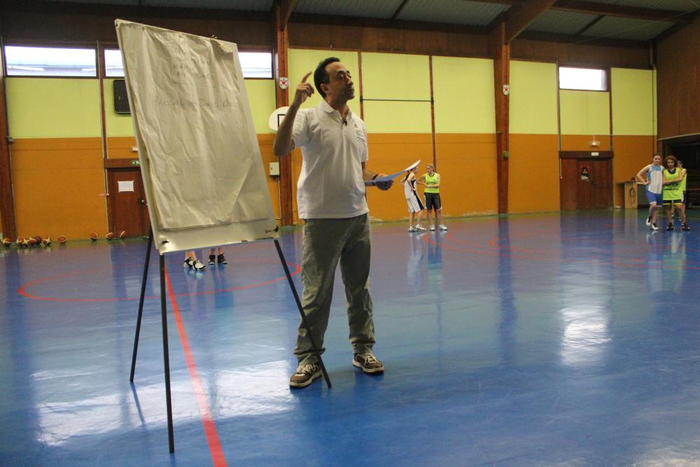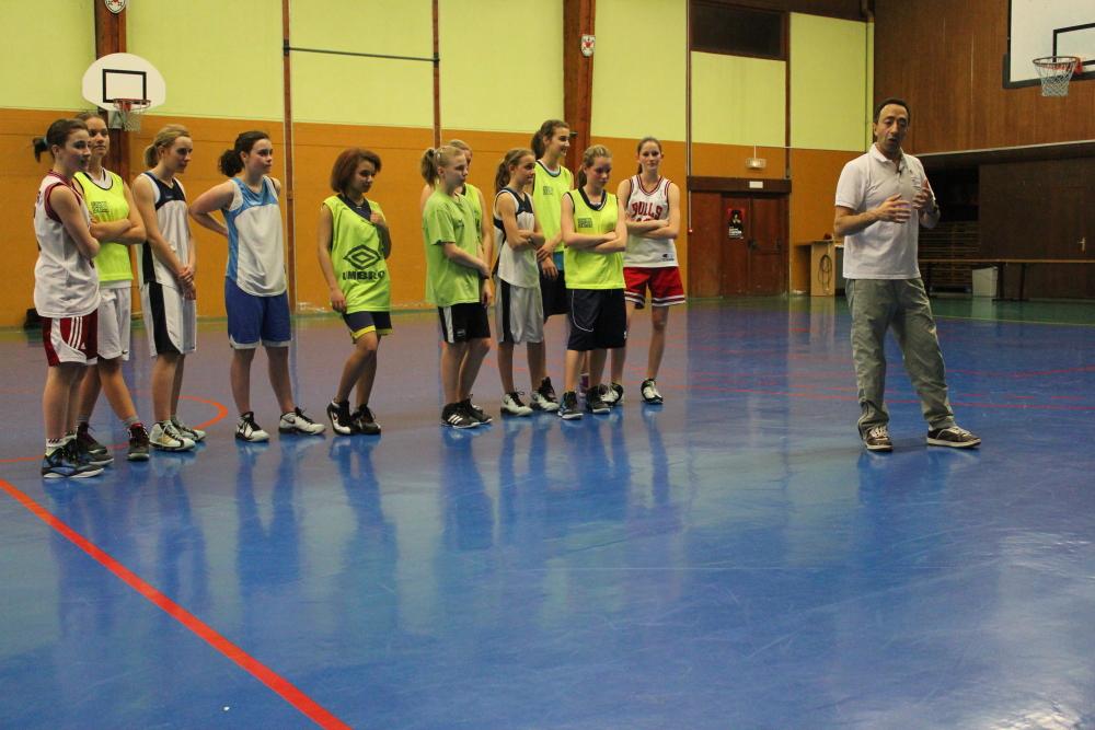 - Explications de techniques de défense données par Abdel Loucif aux joueuses du CSSPP Basket Waldighoffen.