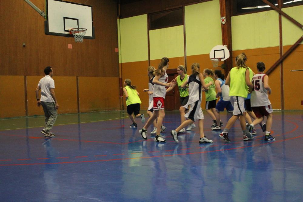 Des joueuses pendant un excercice technique sous l'oeil attentif d'Abdel Loucif, l'intervenant du jour.