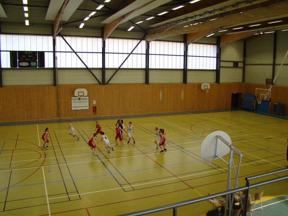 La première action du match est pour Waldighoffen en blanc vers le panier de l'équipe de Duttlenheim le 24 mars 2012.