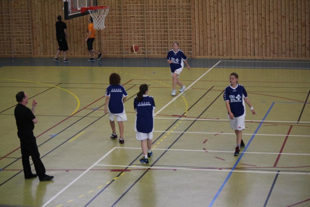 Les minimes filles du CSSPP Basket de Waldighoffen à l'échauffement avant le coup d'envoi du match contre Duttlenheim le 24 mars 2012.
