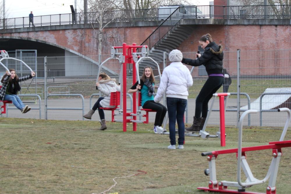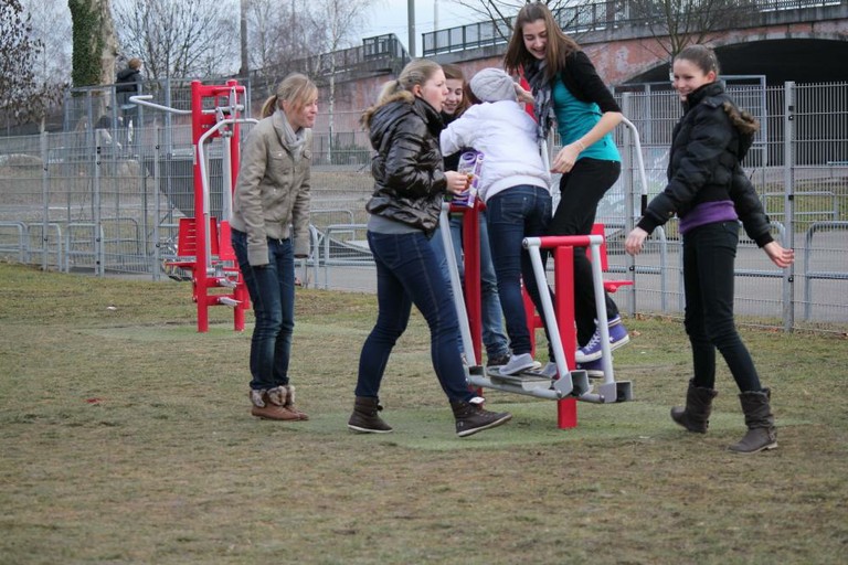 - Les filles de Waldighoffen s'amusent sur des manèges pour enfant juste avant le match.