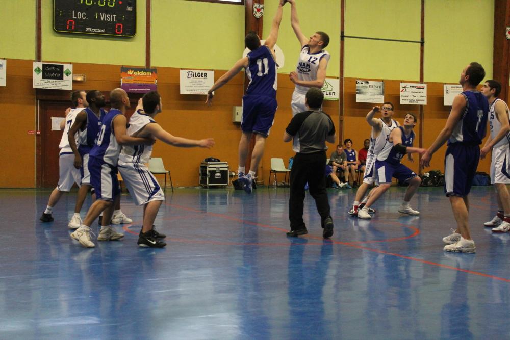 Et c'est parti pour 40 minutes de match par un entre-deux entre 2 joueurs des équipes de Waldighoffen et Richwiller le 13 avril 2012.