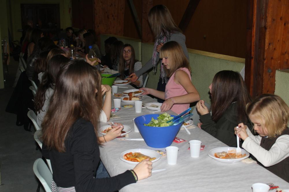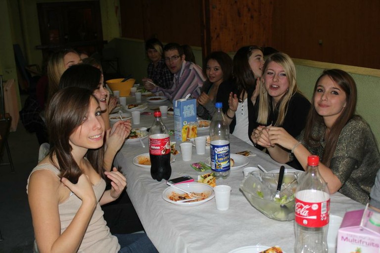 - Tout le monde est à table et se régale avec d'excellentes lasagnes.