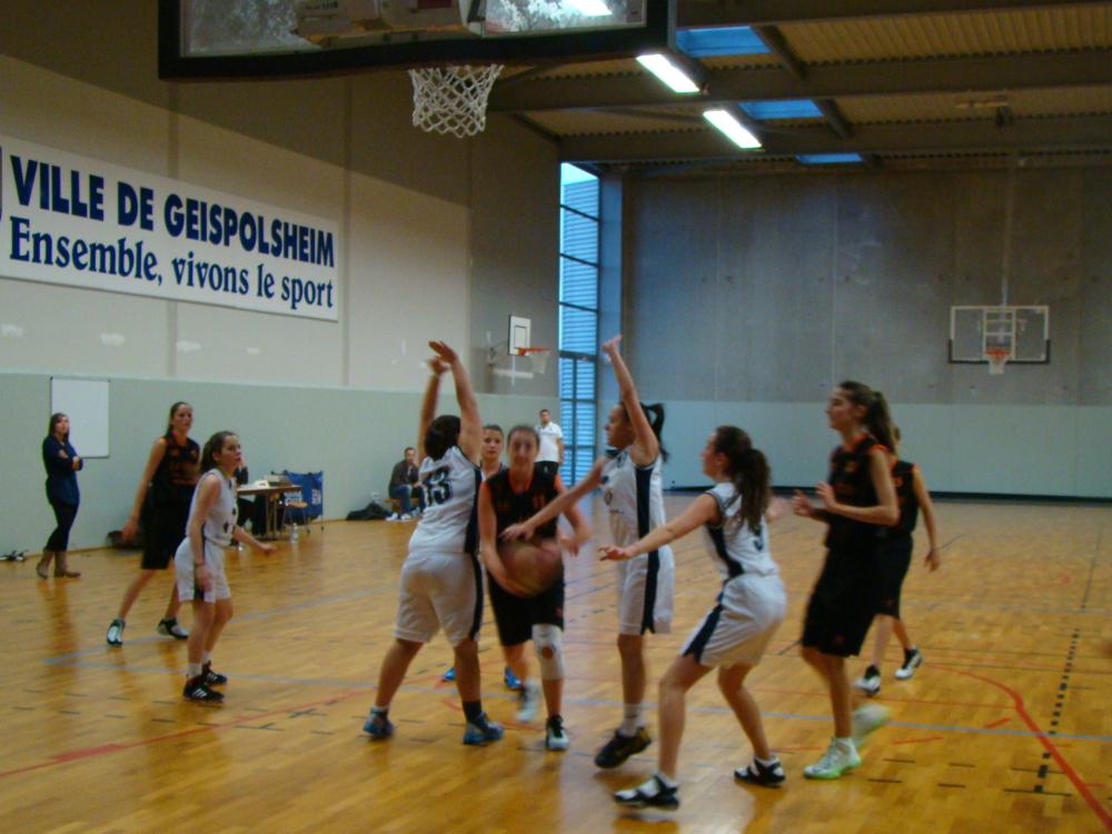 Très difficile de passer dans la défense de zone de Geispolsheim en blanc.