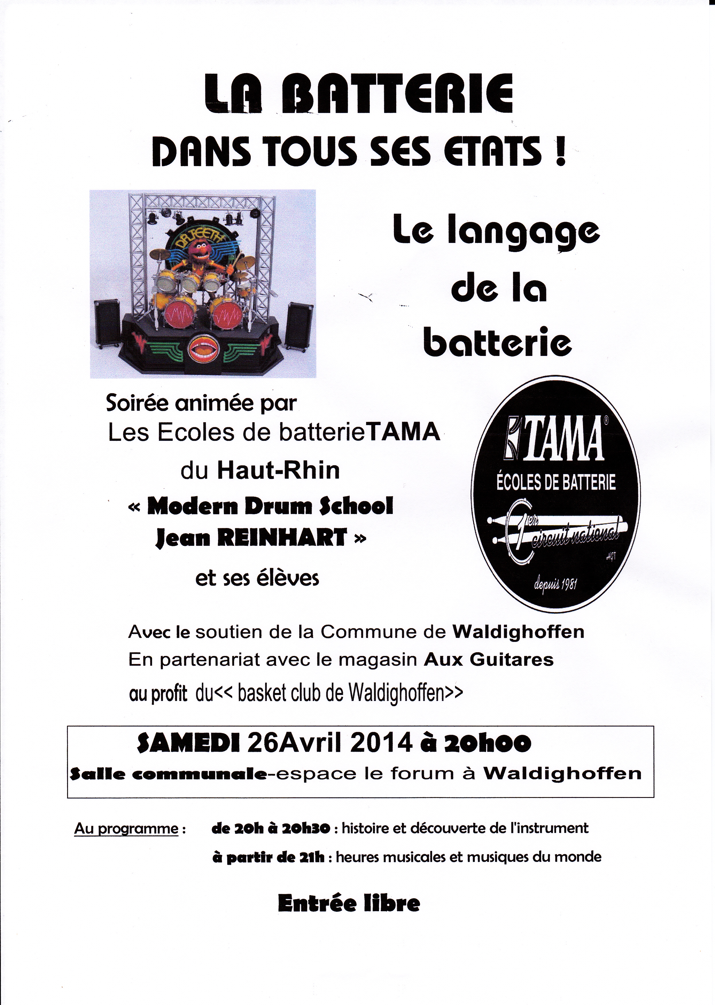 Le basket-club CSSPP Waldighoffen participera à la soirée " découverte de la batterie " en s'occupant de la buvette et de la petite restauration.