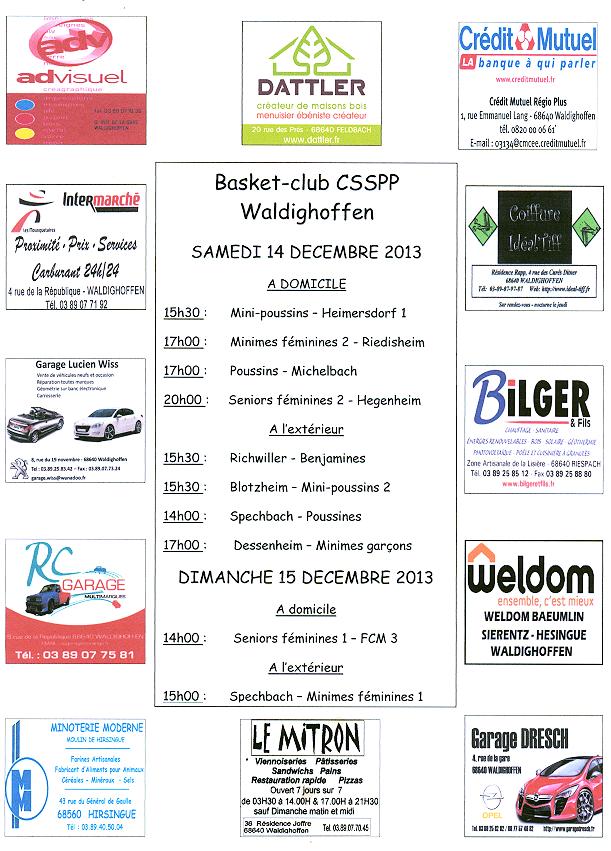 Affiche des rencontres de basket des 14 et 15 décembre 2013.