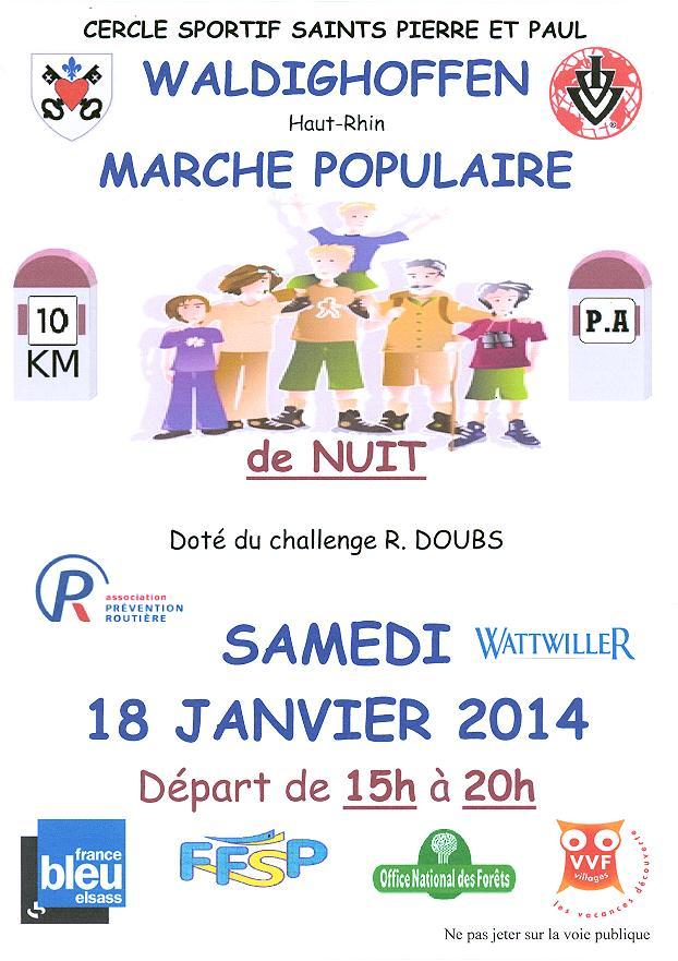 Affiche de la marche organisée par le basket-club CSSPP Waldighoffen le samedi 18 janvier 2014.
