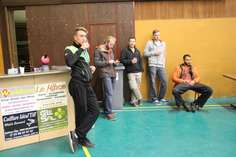 Les seniors garçons à l'apéro après leur victoire à Dannemarie.