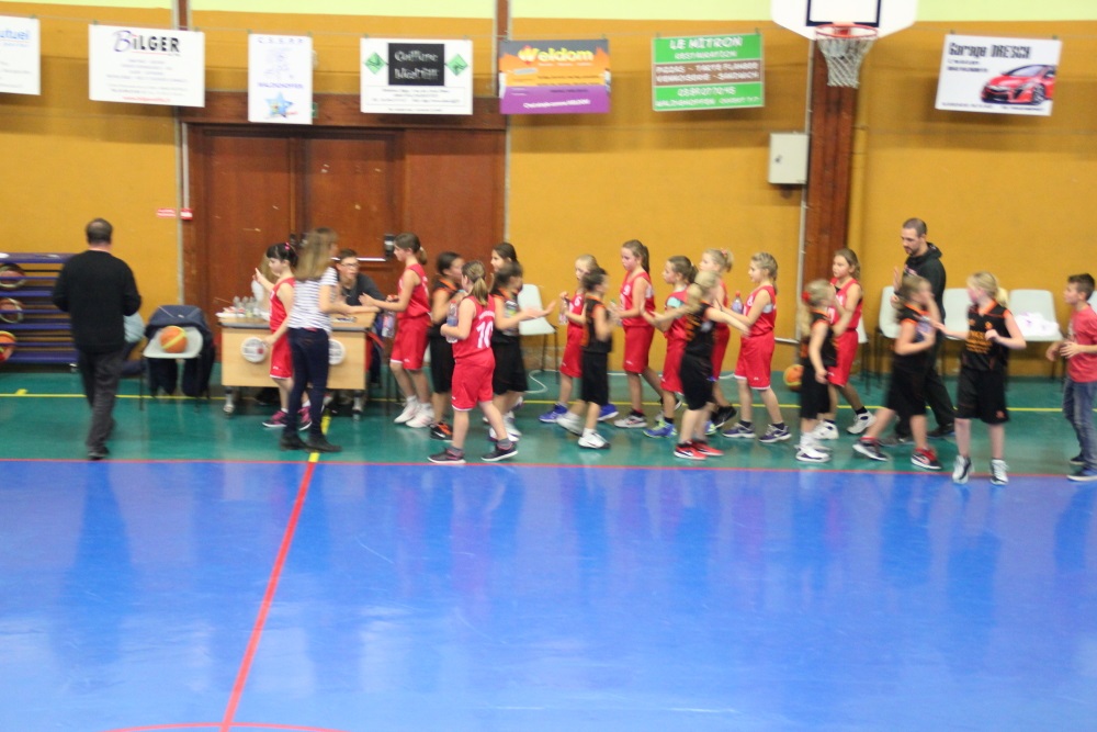 Les 2 équipes se congratulent après le match.
