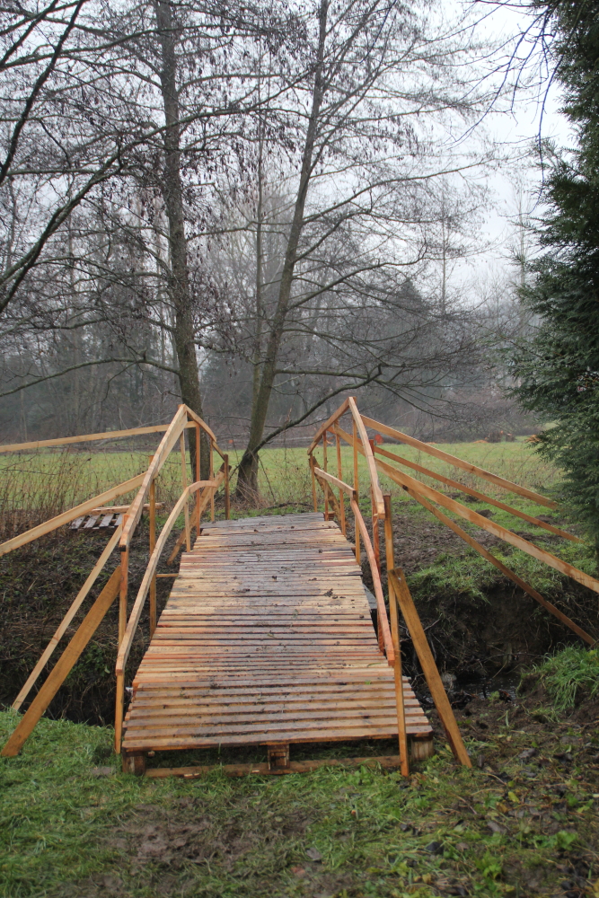 Magnifique ce pont construit au-dessus d'un ruisseau avec des palettes et des planches.