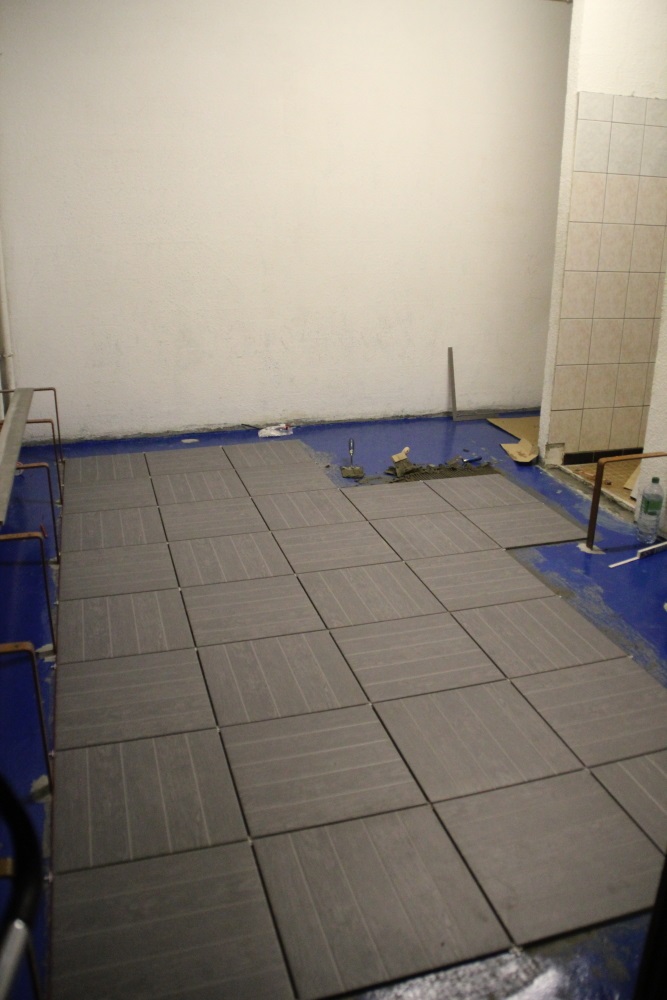 Le sol du vestiaire visiteur prend forme.