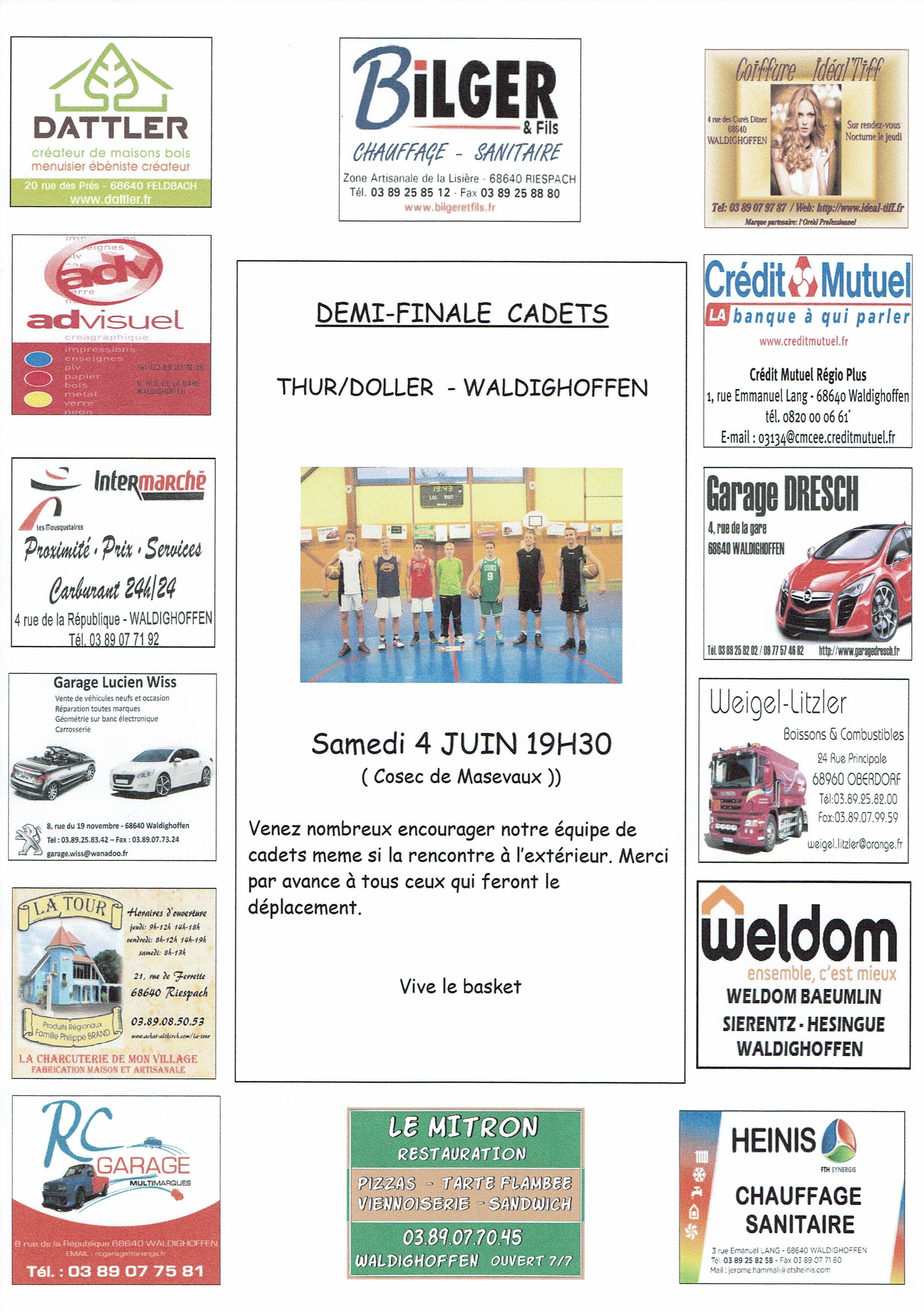 L'affiche de la demi-finale des cadets.