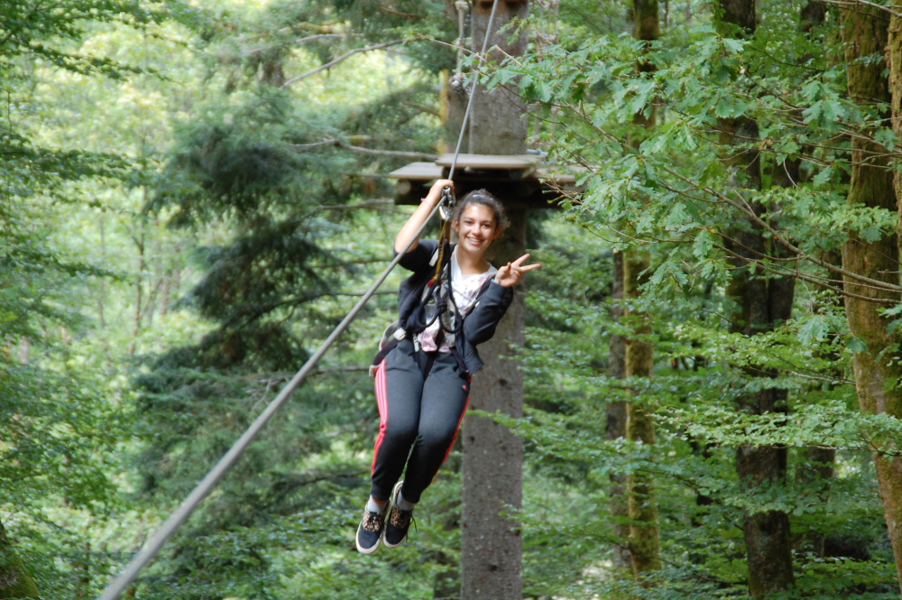 Amandine sur la grande tyrolienne...