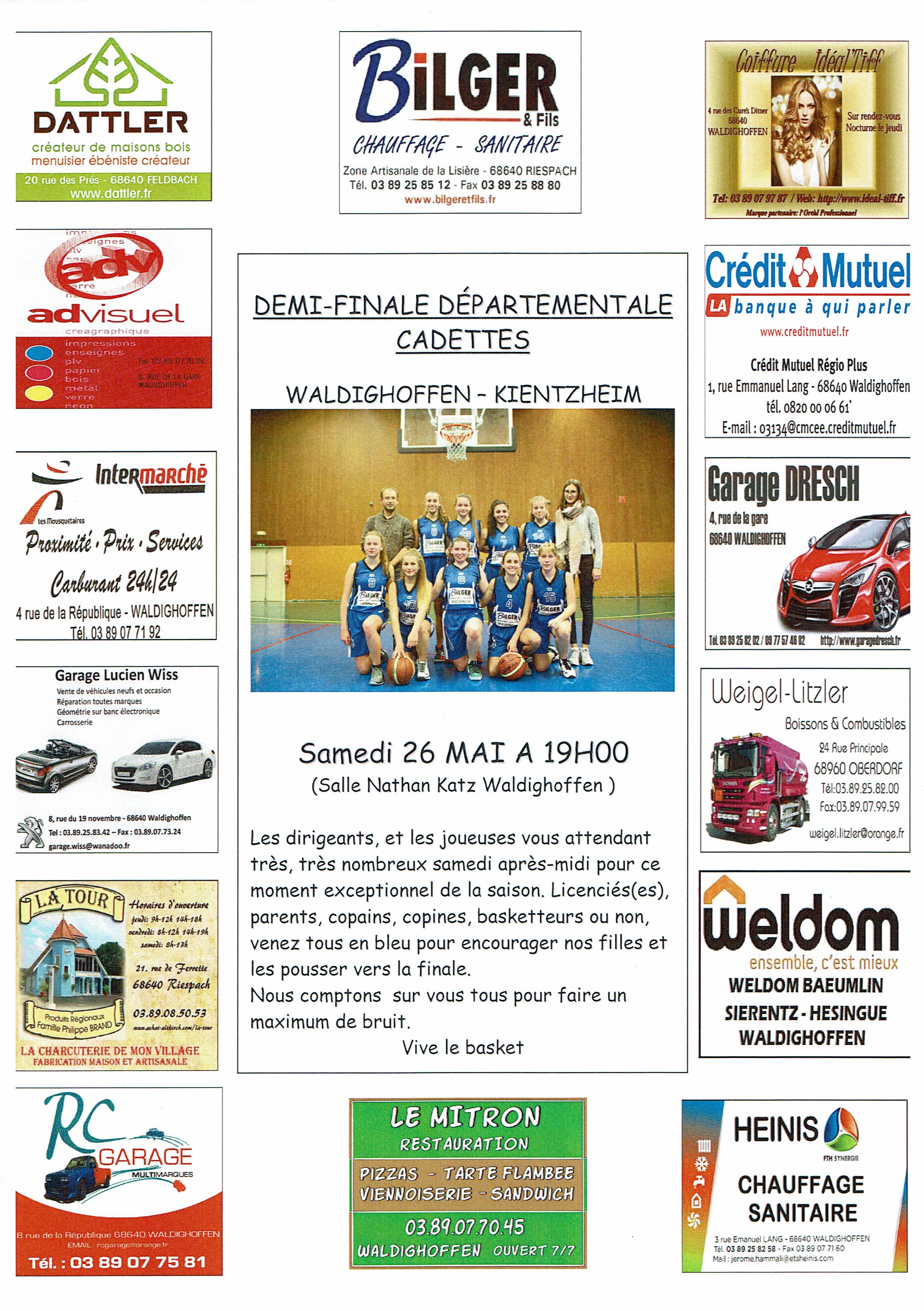 Affiche 1/2 finale cadettes du samedi 26 mai 2018.