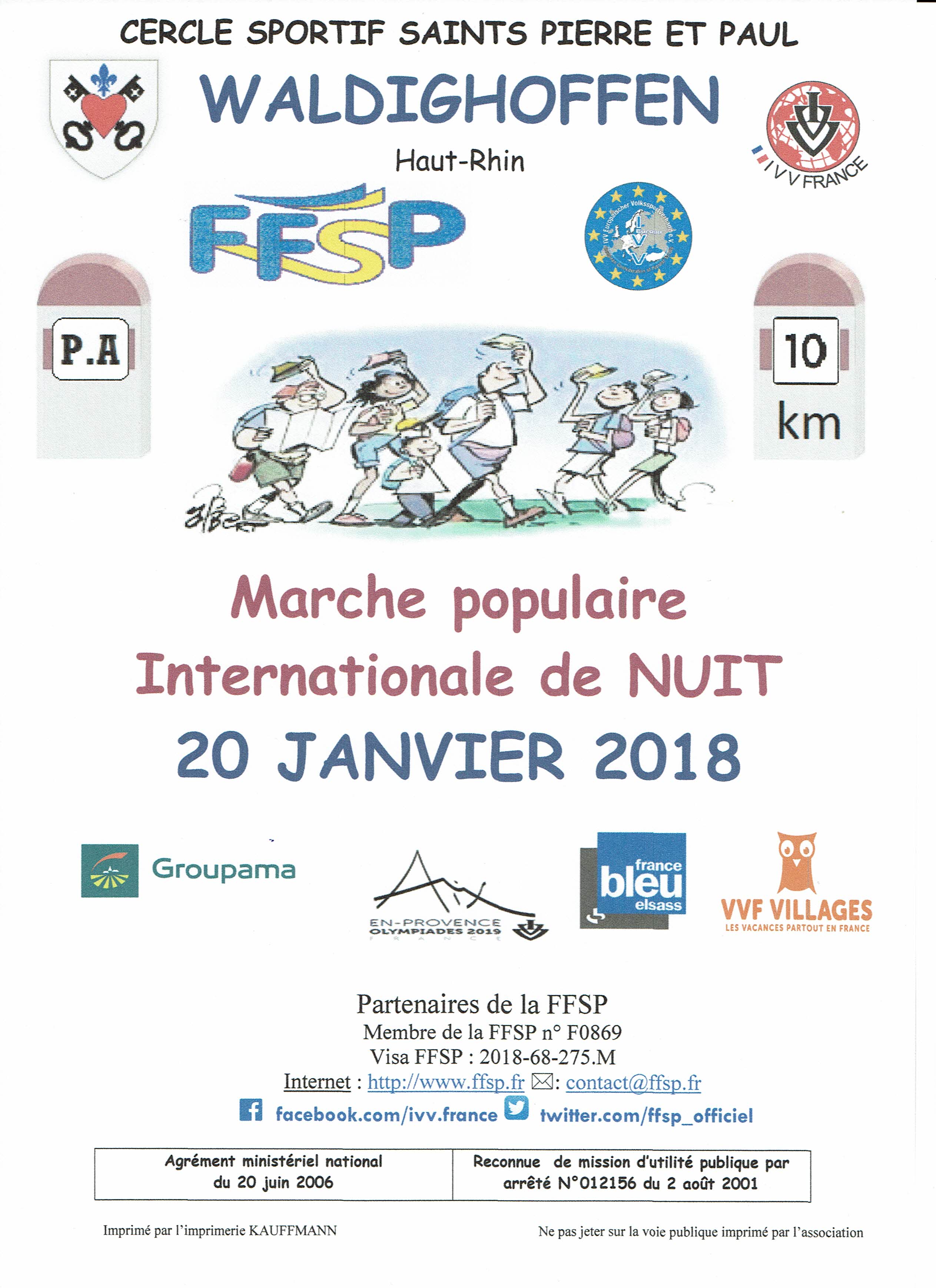 Marche de nuit du 20 janvier 2018 organisé par le basket-club CSSPP Waldighoffen.