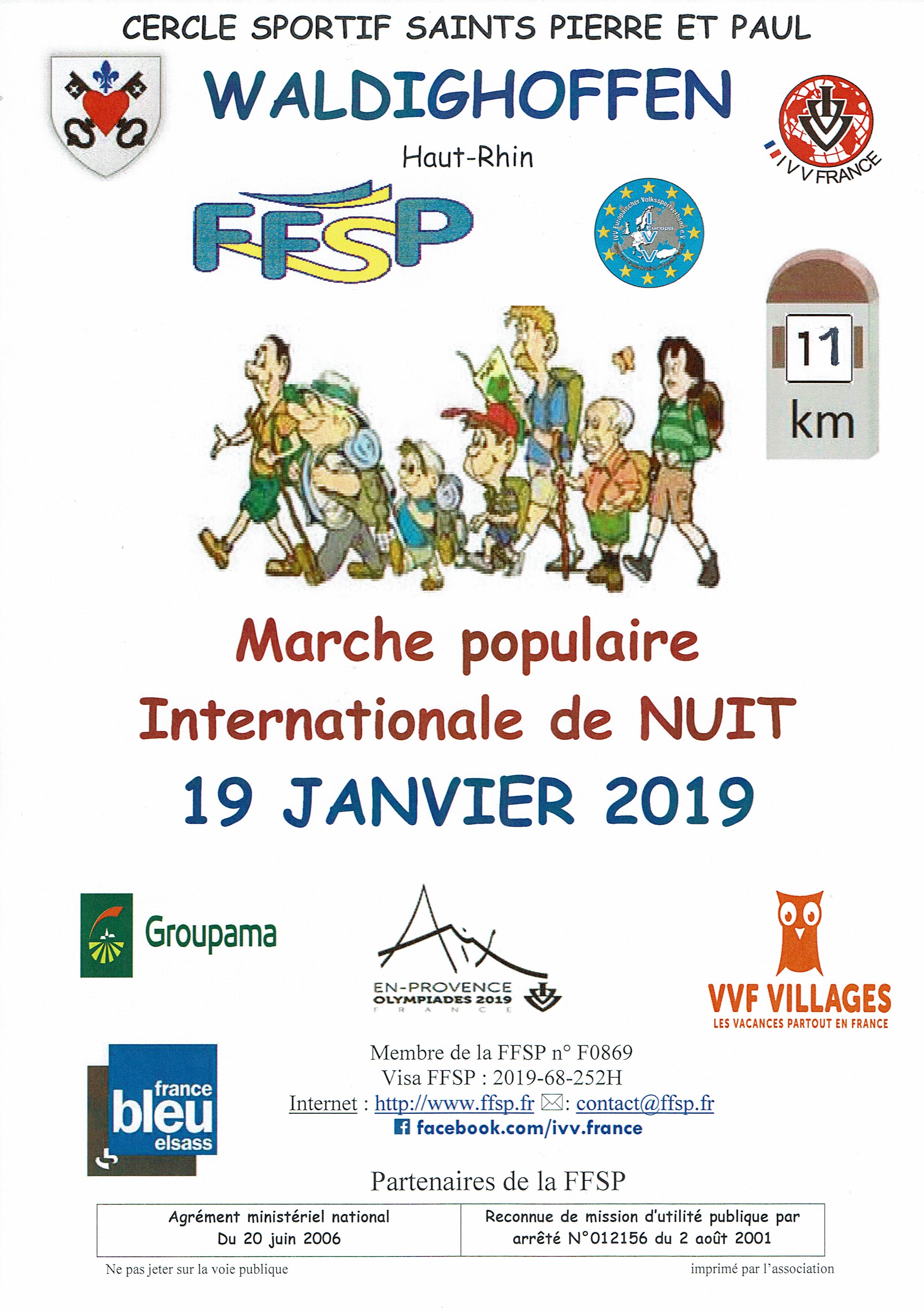 Affiche marche de nuit bu basket-club CSSPP Waldighoffen du 19 janvier 2019.