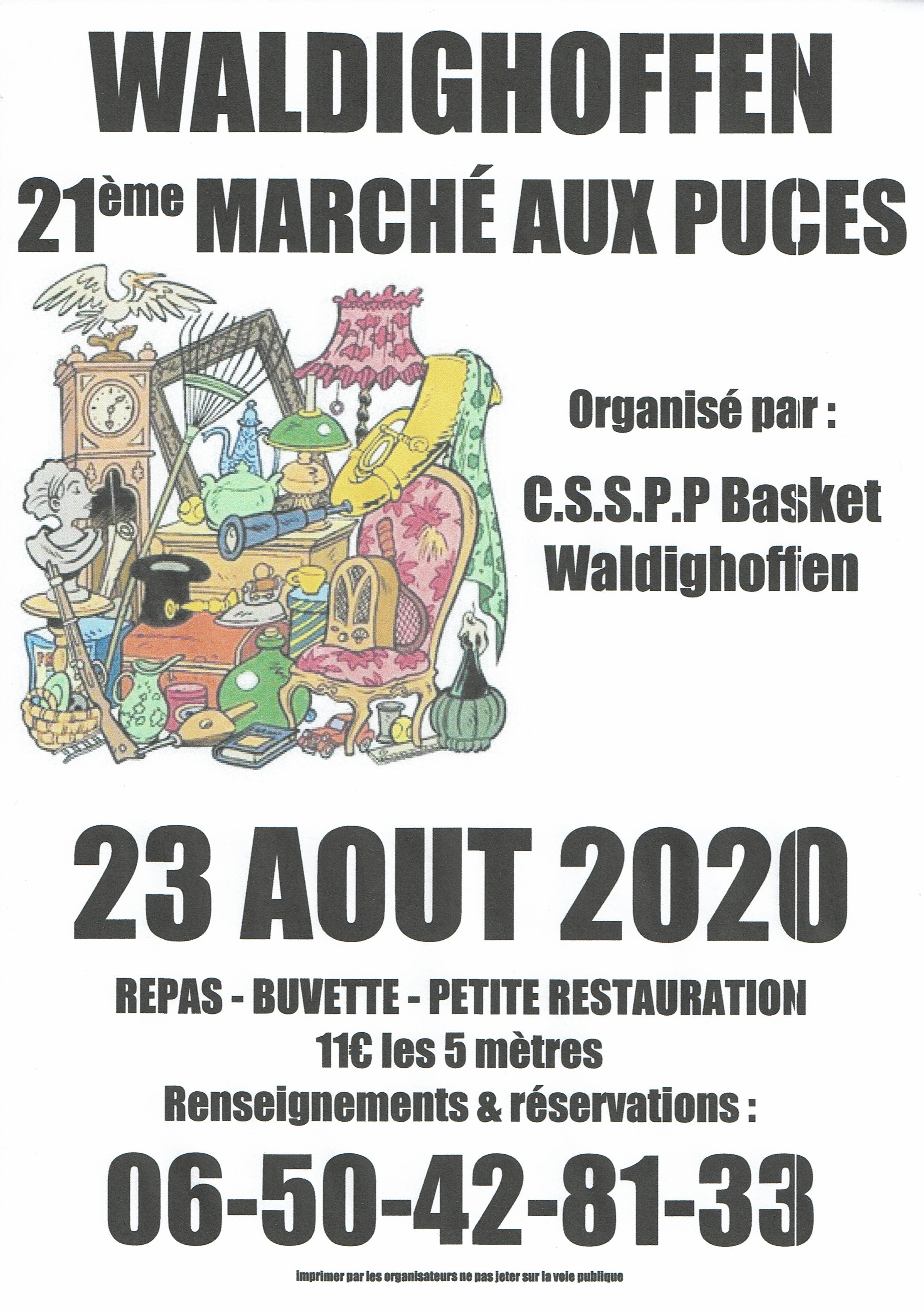 Affiche du 21ème marché aux puces organisé par le basket-club CSSPP Waldighoffen.