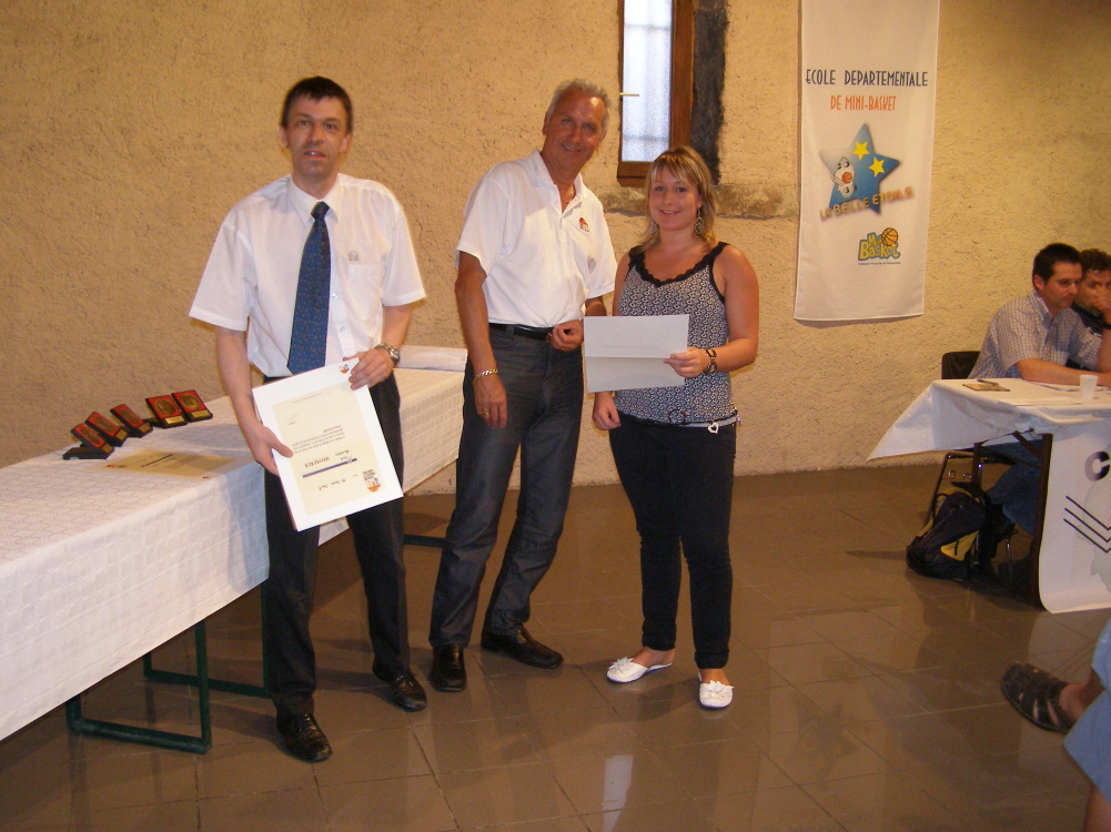 Photographie de la remise de la lettre de félicitation de FFBB à Elodie Friedl