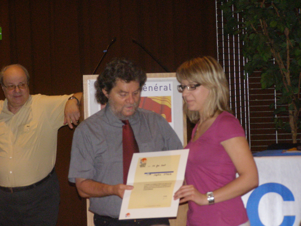 Photographie de la remise de la lettre de félicitation de FFBB à Sophie Stolz