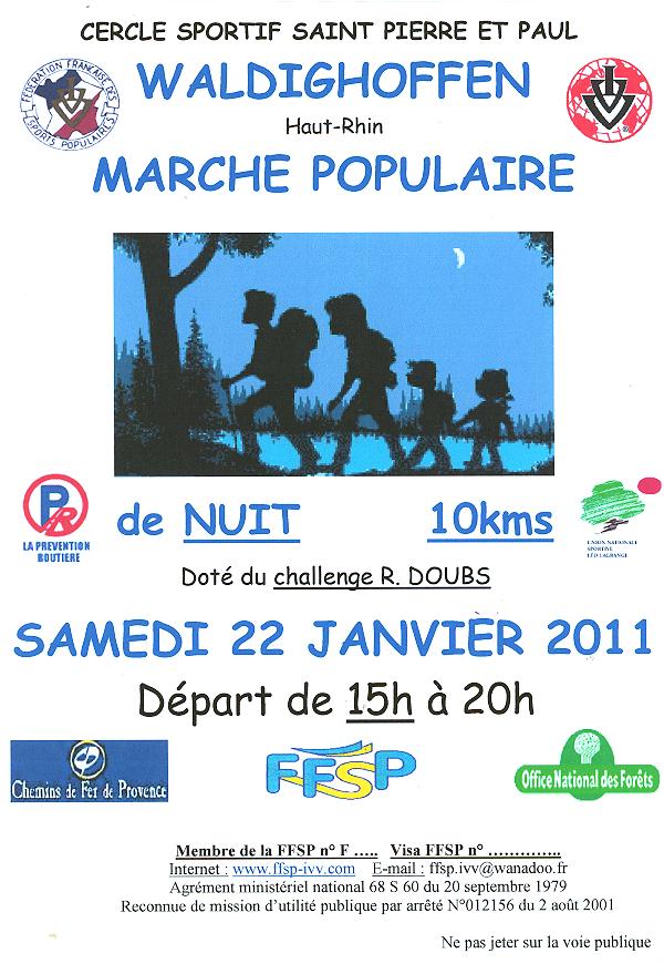 Affiche de la marche populaire de nuit organisé par le basket-club CSSPP Waldighoffen le samedi 22 janvier 2011.