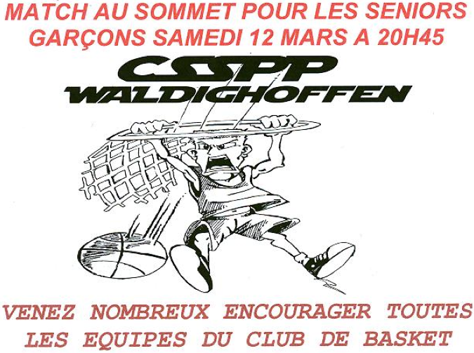 Image de l'affiche pour le match au sommet pour les seniors garçons du CSSPP Waldighoffen le samedi 12 mars 2011.