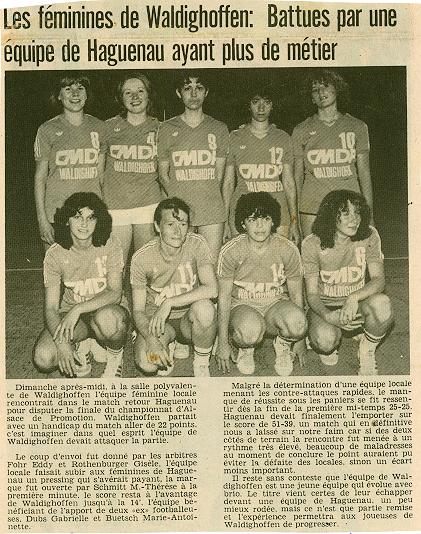 Article de presse concernant les seniors féminines de 1982.