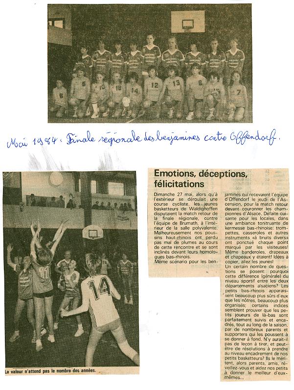 Finale régionale benjamines saison 83/84.