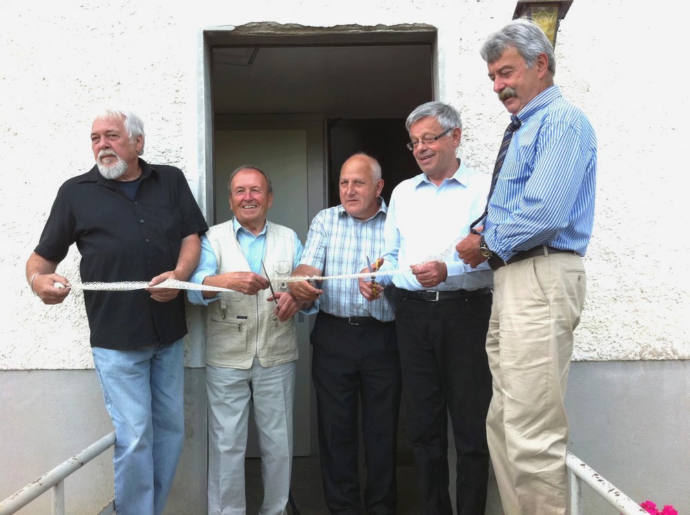 De gros ciseaux, un beau ruban en dentelle...et des sourires. De gauche à droite, Bernard Hoff, René Minéry, Joseph Haas, Henri Hoff et François Rentz