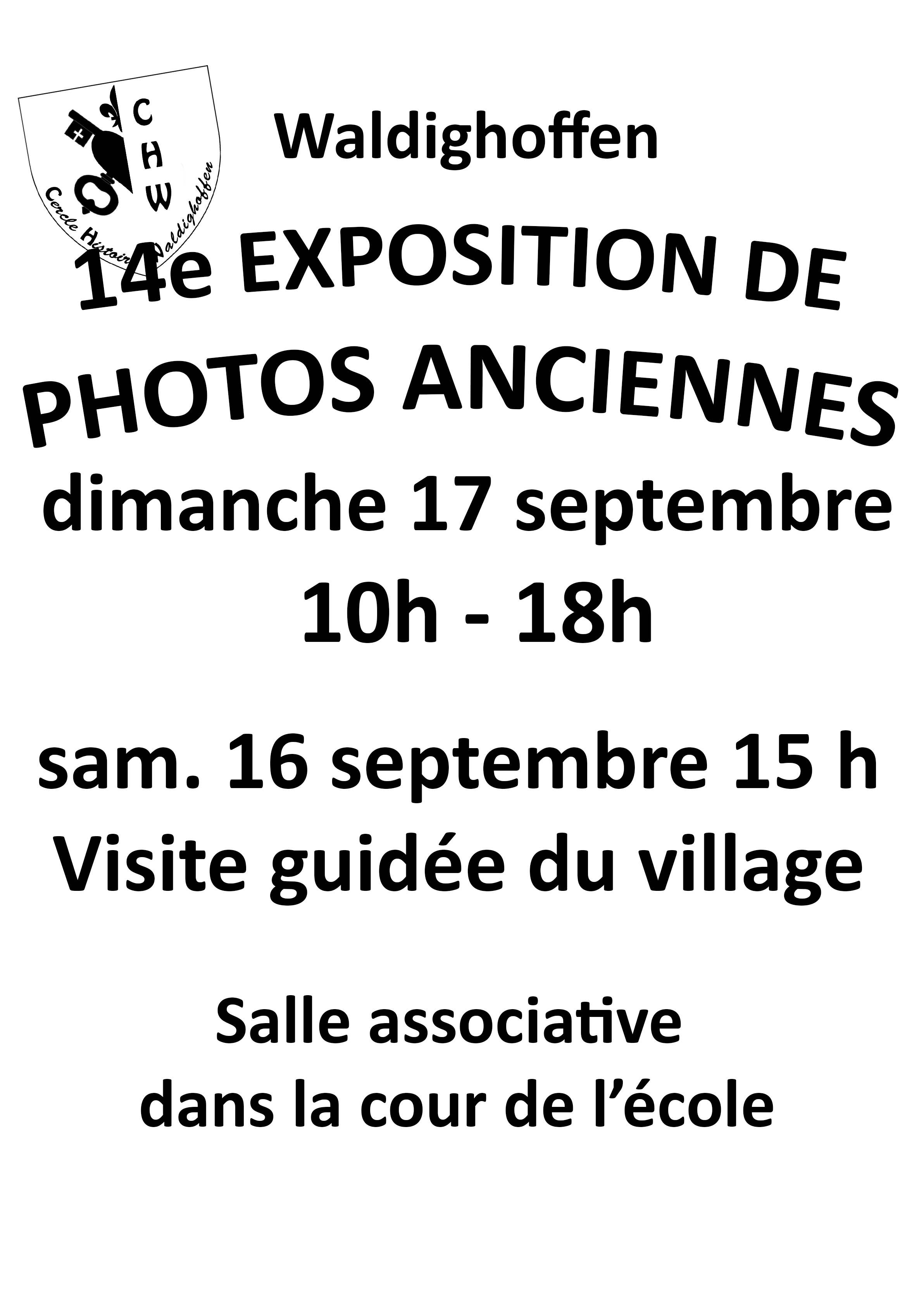 Vous êtes ici : Accueil Vie associative Les associations de Waldighoffen Cercle d'Histoire Locale Photos et documents CHW Affiche expo photos des 16 et 17 septembre 2023