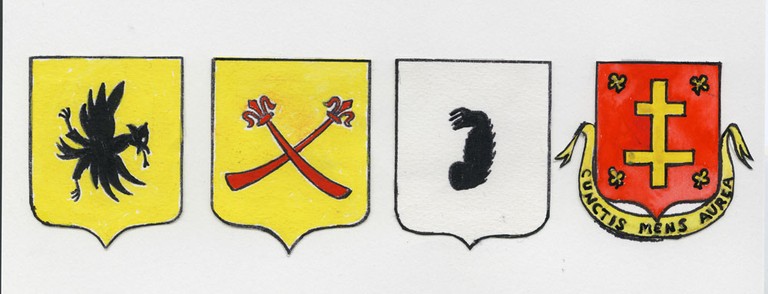 - blasons de la noblesse villageoise de Waldighoffen : De Eptingen, De Ramstein, De Planta de Wildenberg, d'Armédor