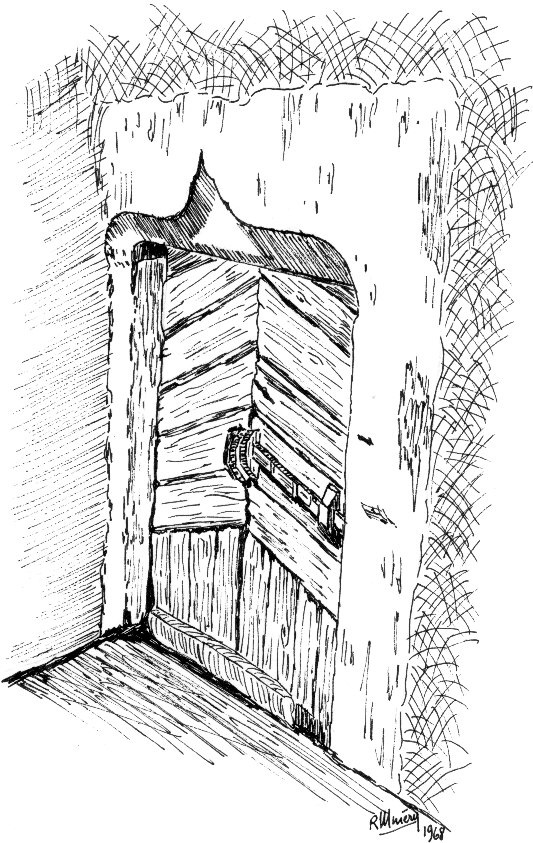 dessin de René Minéry de l'entrée de l'ancien cellier dîmier rue du château datant de la fin du 16e ou début du 17e siècle
