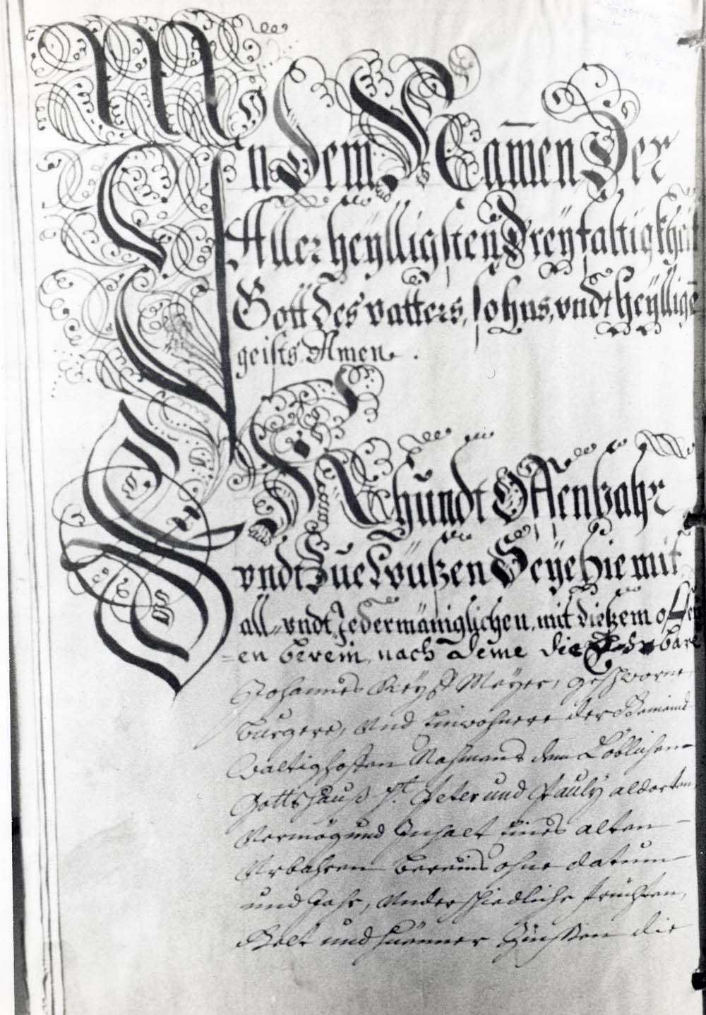 1ere page de l'Urbaire de 1744 des biens situés à Grentzingen et appartenant à l'église de Waldighoffen