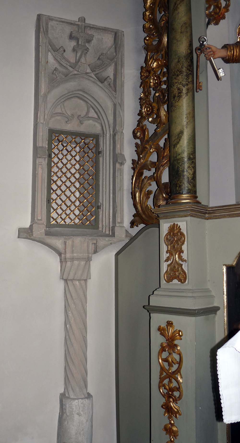 - Custode du 15e siècle de style gothique sur une colonne vrillée dans le mur de l'ancienne église englobée dans l'actuelle église
