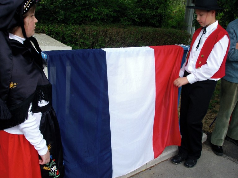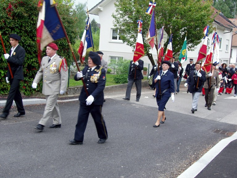 - Photo des portes drapeaux lors du pèlerinage de la Promotion de St Cyriens dans le Sundgau.