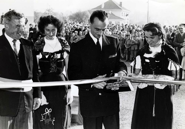 - Le couper de ruban au cours de l'inauguration des locaux de la Com Com "Ill et Gersbach" en septembre 2004