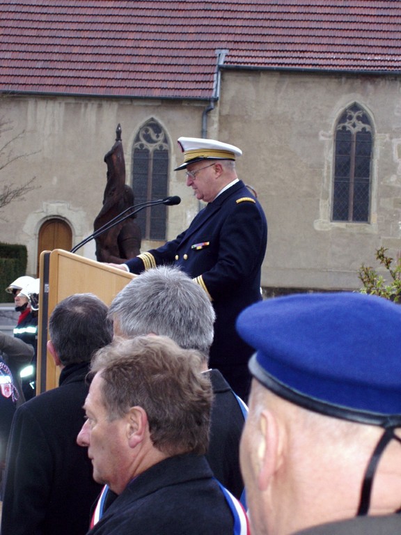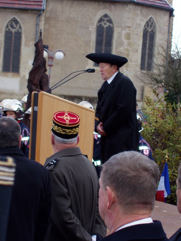 - Photo du Maire de Waldighoffen pendant son discours lors de la cérémonie à l'occasion du pèlerinage des St Cyriens dans le Sundgau.
