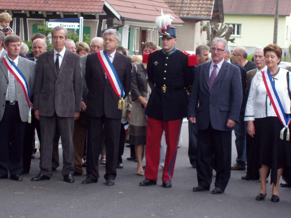 Photo des Elus lors de l'inauguration du pont Lieutenant Jean de Loisy à Waldighoffen, inauguré le 08 mai 2009.