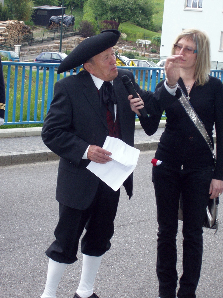 Photo de M. René Minéry pendant son discours lors de l'inauguration du pont Lieutenant Jean de Loisy à Waldighoffen, inauguré le 08 mai 2009.