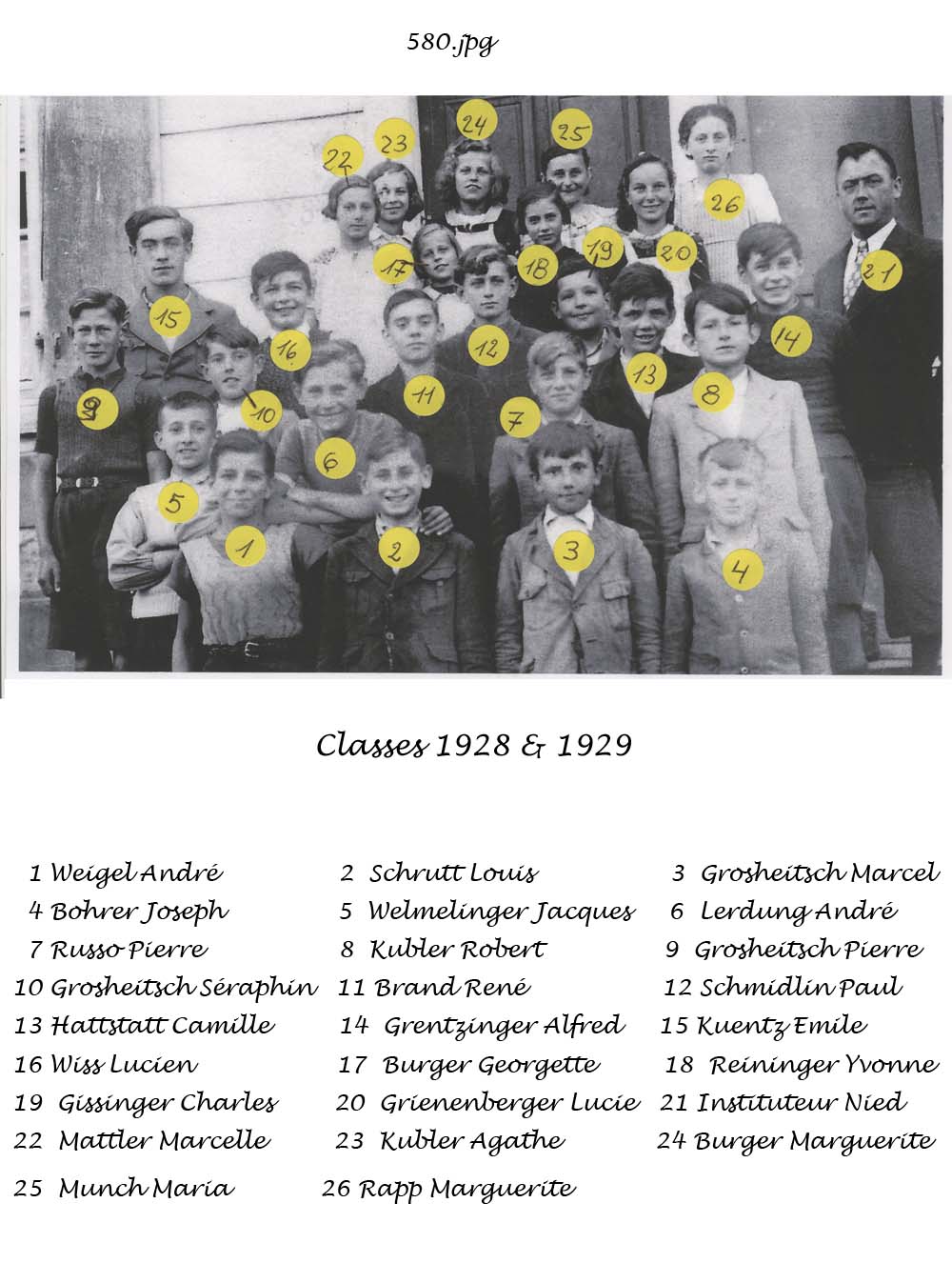 Une photo de classe prise pendant la guerre avec les enfants de Waldighoffen nés en 1928 et 1929 avec les noms.