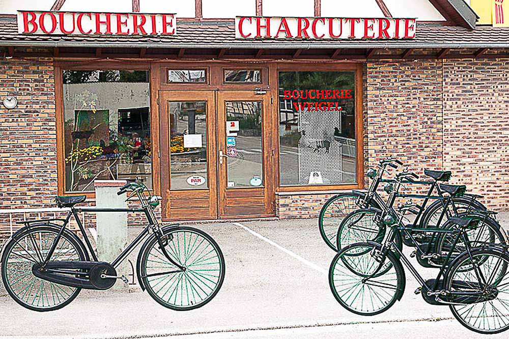 Devant la boucherie Weigel de Waldighoffen (montage)